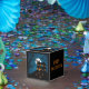 This Halloween party favour box features haunted houses, bats and jack-o-lanterns at night.