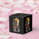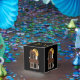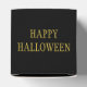 These Halloween party favour boxes feature ghosts at a haunted house, a full moon, and a flying bat on a black background.