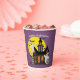Personalise your Halloween party table with this paper cup printed with a colourful haunted house scene. Accented with ghosts, spiders, bats and other cute details. Add some matching paper plates and napkins in this same design. Created in part with artwork by Angela Wenke, formerly resaleclipart.com
