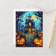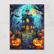This awesome postcard features a Halloween themed haunted house in the Fall season.