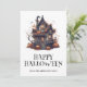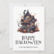 Beautiful Halloween card featuring a haunted house and pumpkins. Easily personalise this watercolor Halloween card with your family name and text.