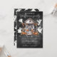 Watercolor chalkboard spooky haunted house with pumpkins and ghosts Halloween party invitation.