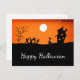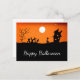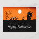 Happy Halloween Greeting postcard, with a black and orange filk art image of a witch and a haunted house. With elegant white script typography, you can add your own text. A cute vintage inspired card to send your Halloween wishes!