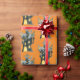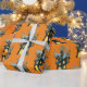 Colourful Halloween themed wrapping paper features watercolor haunted house illustration pattern on pumpkin orange background