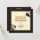 Invite your friends to your Halloween Party with this spooky invitation featuring a witch, bats, an owl, a twisted tree and Jack O’ Lanterns on a full moon on the back while the text is written in an ivory rectangle with black and orange borders and small spooky images -witch, bats and owl- on the front.
