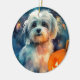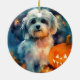 Halloween Havanese With Pumpkins Scary Ceramic Ornament