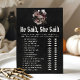 Add a touch of spooky fun to your bridal shower with this "He Said, She Said" game, perfect for a Halloween-themed celebration! Featuring an elegant floral skull design, this game card blends gothic charm with bridal whimsy, making it a standout piece for your event. Guests will love guessing who said what—the bride or the groom—in this entertaining and interactive game. The eerie yet sophisticated design sets the perfect mood for your Halloween bridal shower, ensuring that everyone has a frightfully good time. Whether you're gathering in person or virtually, this game is sure to be a hit and a memorable part of your celebration.💀👰♂️