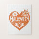 Halloween Heart, Orange Heart Shape, Spider Web Jigsaw Puzzle