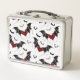 This is a standard metal lunchbox that appears to work just fine. We designed this box ourselves with an uploaded photo and custom text on the front and back. It looks absolutely beautiful except the front of the lunchbox is not centered like it shows in the photo. The print borders don't align with the inset flat part of the box where the preview photo online showed it perfectly centered in there. The back looks nice and centered though.