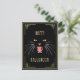 Halloween Hissing Cat Black Elegant Postcard. Black and gold (gold is not real gold but colour). Hissing cat with golden eyes, white teeth and pink tongue and nose. Black background, golden art deco style border. Golden text. Elegant, modern and fun.