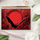 Halloween party coloured holiday envelopes for invitations. Scare someone this Hallows eve with this trendy & unique greeting card or invitation envelope which features an underground cave with deeply embedded rock & stalactite textures and giant spider webs across which a bat colony is flying. A large red glowing moon is rising between them which has a text template to which you may add your guests names or postal address. BACK FLAP AND BOTTOM: Bats are flying across the back too and the sides are edged with a feint border trim through which spider webs and the caves walls can be seen. INSIDE: The same graphic appears on the inside and a text template says "Happy Halloween in bright red scary font. CUSTOMIZE IT: Change the wording to suit your special occasion and feel free to re-size, re-position or even replace the graphics with one of your own. The text colour, style and size may be changed and you may add extra text and photos to make it truly unique. ENVELOPE SIZE & PAPER CHOICE: Change the size and paper selection of the envelope to suit your card or invite. USE IT FOR: Halloween party invites for guests, greeting cards or haunted, murder evening parties. MATCHING RANGE: Visit our web page and select the "Major Holidays", "Halloween" categories to view the full range of trendy merchandise in this line. STORE WEB ADDRESS: http://www.zazzle.com/mensgifts* CUSTOM ORDERS: If you would like us to design something special for you, drop us a note on our homepage and specify what it is you require. COPYRIGHT: Robin Wood - All rights reserved.
