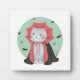 A cute illustration of a cat wearing a vampire costume for Halloween
