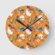 Halloween illustration with pumpkin,ghost and bat round clock