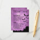 Halloween Information Card with bats over a purple background and a black grunge bottom frame. You can change the fonts and all of the text. You can move, reduce the size, or delete the bats and the bottom black frame.