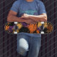 This skateboard design combines bold, graffiti-inspired sunburst patterns with a Halloween-inspired colour scheme of orange, purple, and black. The striking sunburst elements and gritty textures create a dynamic, urban vibe, perfect for skaters who appreciate a unique blend of seasonal style and street art energy. With a balance of intense colours and expressive brushstrokes, this deck offers a rebellious and stylish aesthetic for those looking to stand out in the skatepark with a bold, spooky vibe.