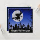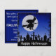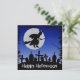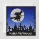 Halloween illustration with witch and gravestone decoration at full moon in grunge frame