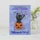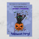 A Halloween Party Invitation featuring MuffinPuffARTS! Newest cartoon character Elliot, a rather grumpy black cat. Here he is jumping excitedly out of a carved pumpkin throwing candy and sweets all over the floor. All the text is customisable. Illustrations by Jojo Kneebone - Aka MuffinPuffART!