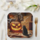 Halloween Jack-o-Lantern and Cat In Barn Paper Plate