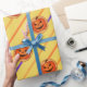 Halloween Jack-O-Lantern Pumpkin Cookie on Yellow Wrapping Paper
