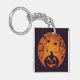 Halloween Jack o lantern pumpkin face and spider Key Ring