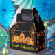 This fun favour box features a trio of whimsical Jack-O-Lanterns, surrounded by fall leaves. The text reads, Happy Halloween, on the front and back of box. You can personalise your favour box by adding your own text.