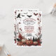 A spectacular Halloween Pumpkin Carving party invitation with jack o lanterns. The design features fall pumpkins, bats, raven and fall foliage in fall colours. Reverse side has a matching design. The text is easily customisable.