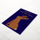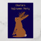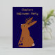 This beautiful foil Hallowen Party invitation features a digital art image of a Jackalope, a mythical creature, also known as a cryptid, that is rumoured to live in the woodland. The animal is a mixture of a jackrabbit and a deer that is the official mythical creature of the state of Wyoming. My design has the brown animal standing upright with its ears up as it gazes upwards. It has dark brown antlers on its head. The cheeky Jackalope has a reputation as a trickster, making it the perfect animal for some Halloween trick or treat fun.