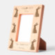 This awesome etched wooden photo frame features a digital art image of a Jackalope, a mythical creature, also known as a cryptid, that is rumoured to live in the woodland. The animal is a mixture of a jackrabbit and a deer that is the official mythical creature of the state of Wyoming. My design has the brown animal standing upright with its ears up as it gazes upwards. It has dark brown antlers on its head. The cheeky Jackalope has a reputation as a trickster, making it the perfect animal for some Halloween trick or treat fun. There is custom text so you can personalise this design with the occasion and date and a family name.