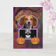 Halloween Greetings couldn't get spookier than with this Beagle Dog helping you to send your Scary message. This design is available in close to 100 Dog Breeds. If you don't see your dog breed, let me know and I'll do my best to add it for you. It is also possible to put YOUR OWN PET, into this design and any of my other designs. Just simply contact me to find out how. This design is also available as a photo card for your to upload your favourite photo into. Perfect for your own little goblin....human or not! If there is a product that Zazzle offers and you don't find it here, let me know and I will be happy to create it for you.