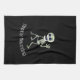 Kitchen towel shown in black with a Halloween skeleton print design. Customise this item or buy as is.