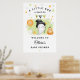 A little boo is almost due. Halloween Little Boo Baby Shower Welcome Sign with a cute watercolor baby ghost with a witch hat, pumpkins, hearts, stars and an orange balloon. Baby shower Welcome Sign editable template.