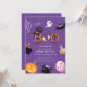 Embrace the spirit of the season as you prepare to celebrate a forthcoming bundle of joy with this stylish and eye-catching Halloween Little Boo Spooky Baby Shower Invitation. This charming and stylish invitation features a captivating watercolor design in orange and pink hues against a vibrant purple background and a playful "A little Boo is almost due" saying, perfectly capturing the essence of Halloween whimsy. Delight in the cute and spooky elements, including playful ghosts, sinister cauldrons, and other witch's accessories, that bring a dash of Halloween flair to your event!