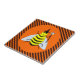 This awesome tile features a cute little yellow bee witch with black stripes. The Bee has big shiny black stripes and cute little black antennae. The wings of the bee are folded back to look like a cape. The bee is wearing a tall black witches hat with orange and purple stars on it. It is also holding a magic wand that is star shaped and sparkles with lots of different colours.