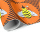 This awesome wrapping paper features a cute little yellow bee witch with black stripes. The Bee has big shiny black stripes and cute little black antennae. The wings of the bee are folded back to look like a cape. The bee is wearing a tall black witches hat with orange and purple stars on it. It is also holding a magic wand that is star shaped and sparkles with lots of different colours.