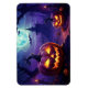 This magnet is shown with a festive Halloween scary pumpkins scene print.