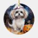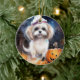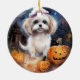 Halloween Malti Tzu With Pumpkins Scary Ceramic Ornament