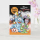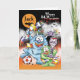 For soccer and monster fans. Two scary, spooky, funny monsters are on a soccer pitch with a soccer ball and a goblet cup in the design of a skull. The goblet is filled with blood, and the monsters are surrounded by fog and bats. There is a full orange moon in the background which can be personalized. A fun card for boys and girls.