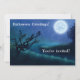 Host the perfect party with this vintage Halloween design featuring the glowing moon at night with trees and grass in shades of blue and green.