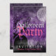 Dead tree at graveyard with big spider web over gravestone with foggy dark purple semi cloud covered full moon suitable for Halloween, Gothic Birthday or a Special Party Invitation or any type of occassion. All the text is fully customisable..