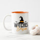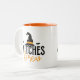 Coffee Mug is shown in orange and white with a Halloween witches brew print design.
