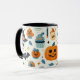 Product Description: This is a special mug filled with the spirit of Halloween. It is a perfect item for the Halloween season as it depicts various Halloween characters such as cute ghosts, pumpkins, witches, and more. Enjoy some Halloween fun with a warm drink from this mug!
