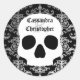 Envelope seals in black and grey damask with a white skull on them. Personalise them with your monogram and two names. Perfect for Halloween weddings.