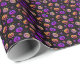 Halloween seamless pattern with black background and carved neon pumpkins.