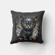 Halloween night with kitten and pumpkins. Kitten with bright, big eyes sitting among scary looking pumpkins on a mysterious Halloween night. The colour palette includes dark tones like black and dark blue combined with bright orange from the pumpkins. A few flying bats enhance the mystical mood of the night.