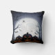 This darkly elegant Halloween pillow has a deep blue background showing full moon, lighted Jack-O-Lantern, flying bats, haunted trees, spider cobweb and spooky spider. Great as a Halloween home decor. You can give it as the perfect gift to a friend or loved one this holiday!