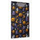 Symmetrical Halloween toon pattern style with pumpkins, flying bats, skulls