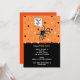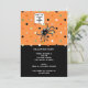 Creative housewarming Halloween themed party invites featuring a cute swinging spider design theme.