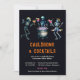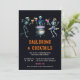 A fun, funny but elegant and modern corporate or small business office Halloween party invitation with a cauldrons and cocktails theme, featuring three dancing skeletons with cocktails standing around a witch's cauldron. Fun and funny, elegant, modern, simple and classy, for the best Halloween party your office has ever seen.