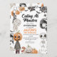 Cute boys Halloween themed birthday party invitation featuring a skeleton, pumpkin head, mommy, bat, a few pumpkins and more. This Halloween birthday invitation is suitable for a Halloween themed birthday party and can be used for any age.