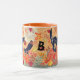 Halloween motifs in warm orange, yellow and red hues are accented with traditional black cats on this mug. My original watercolor art of a pumpkin patch, swirling autumn leaves, a friendly fall moon and stars are shown on a candy-coloured light orange background. There are even tiny grey mice playing in the leaves! Customise with an off-kilter monogram initial in black - it's easy to do using the Personalise prompt and template on the product page. A fun home decor accent or gift for anyone's home or office. Whimsical, unique, original artwork & design by Tuzi Williams.